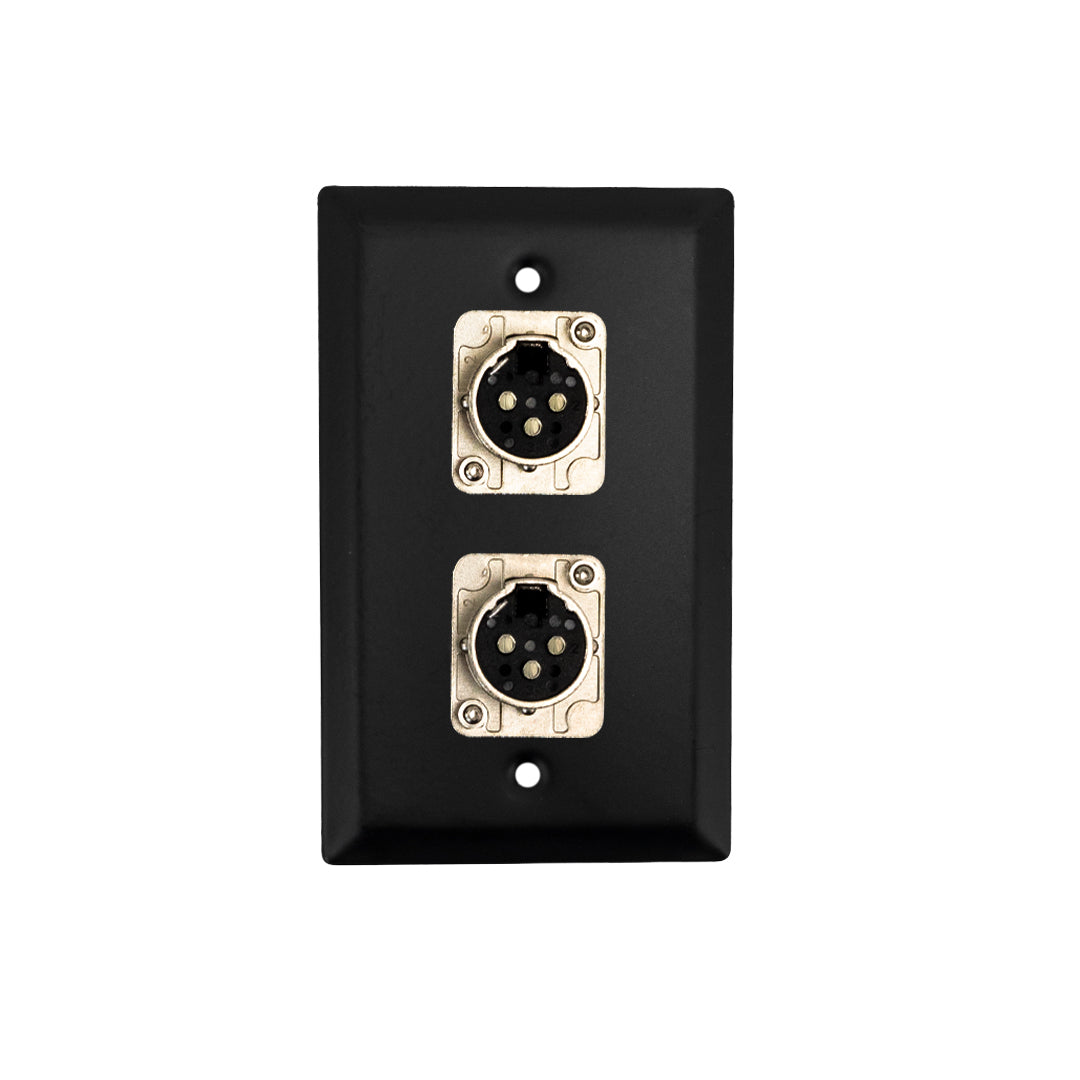 Single Gang 2 x XLR Locking Female Stainless Steel Wall Plate Kit - BLACK