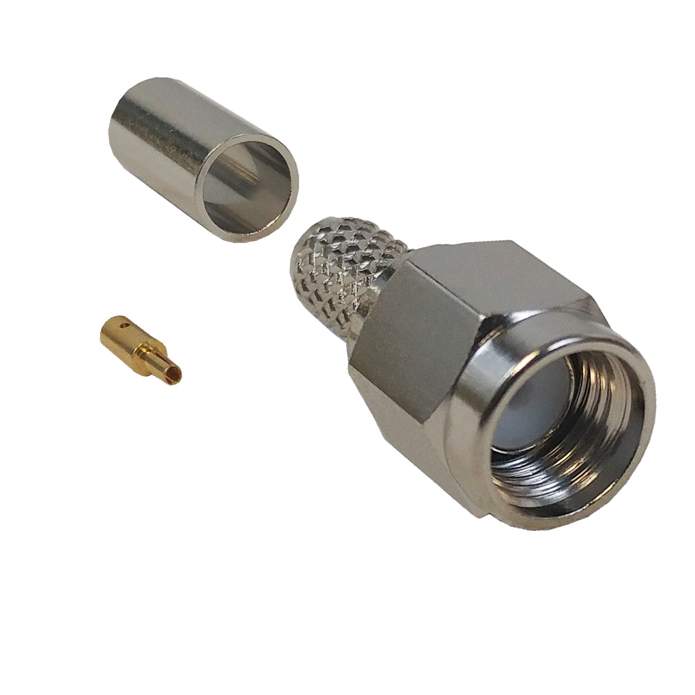 This SMA male reverse polarity crimp connector is meant to be terminated on LMR-200 bulk cable.